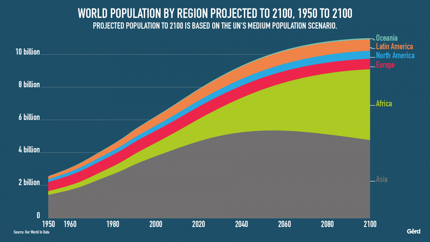 Per the below chart, Asian population growth was quite rapid since the 1950s but is close to topping out, which will occur around 2050: