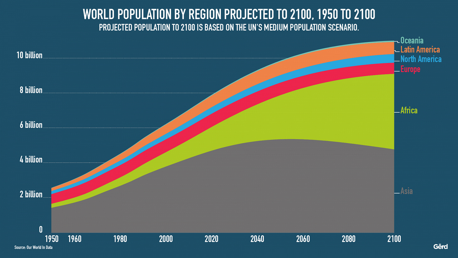 Of global population growth, most of it is currently coming from Africa: